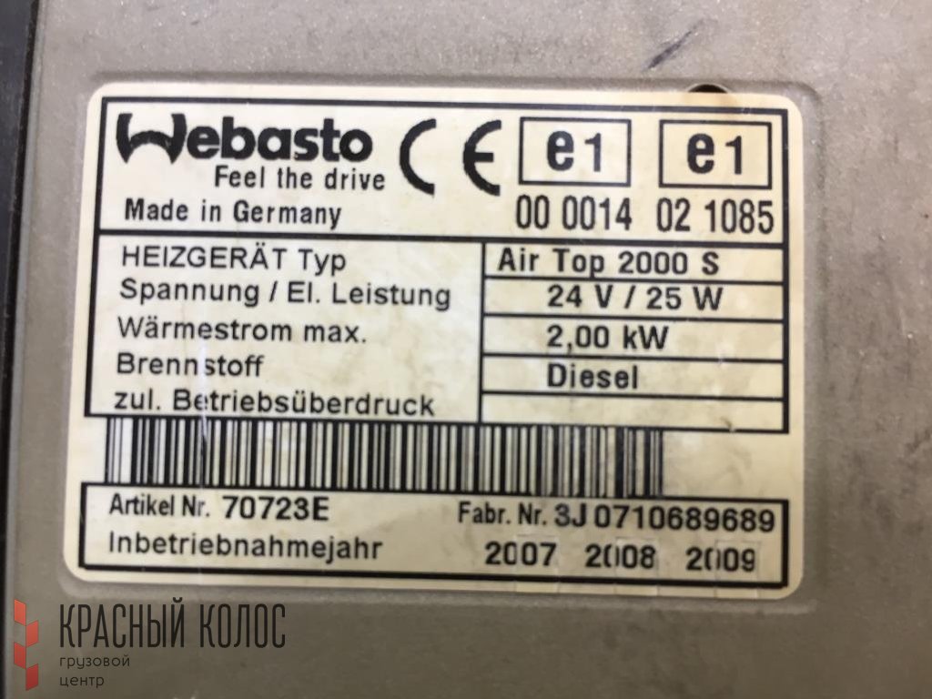 Автономный отопитель сухой WEBASTO AIR TOP 2000S-D 2 kW (RPT279 / RENAULT TRUCKS / Premium 2 / 2006, Деталь, б/у)