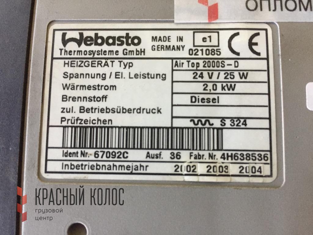 Автономный отопитель сухой WEBASTO AIR TOP 2000S-D 2 kW (TP47 / MAN / TGA / (2000-н.в.), Деталь, б/у) -